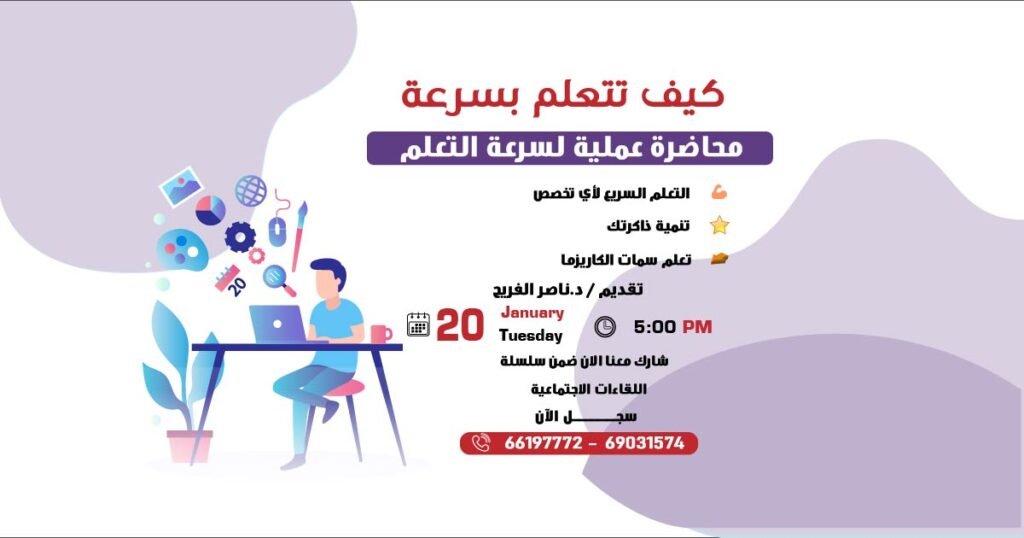 محاضرة تدريبية مجانية: كيف تتعلم بسرعة؟ هل ترغب في تعلّم مهارات تساعدك على اكتساب المعرفة بسرعة، وتنظيم أفكارك، واستثمار وقتك بشكل أفضل؟هذه المحاضرة العملية صُممت لمساعدتك […]